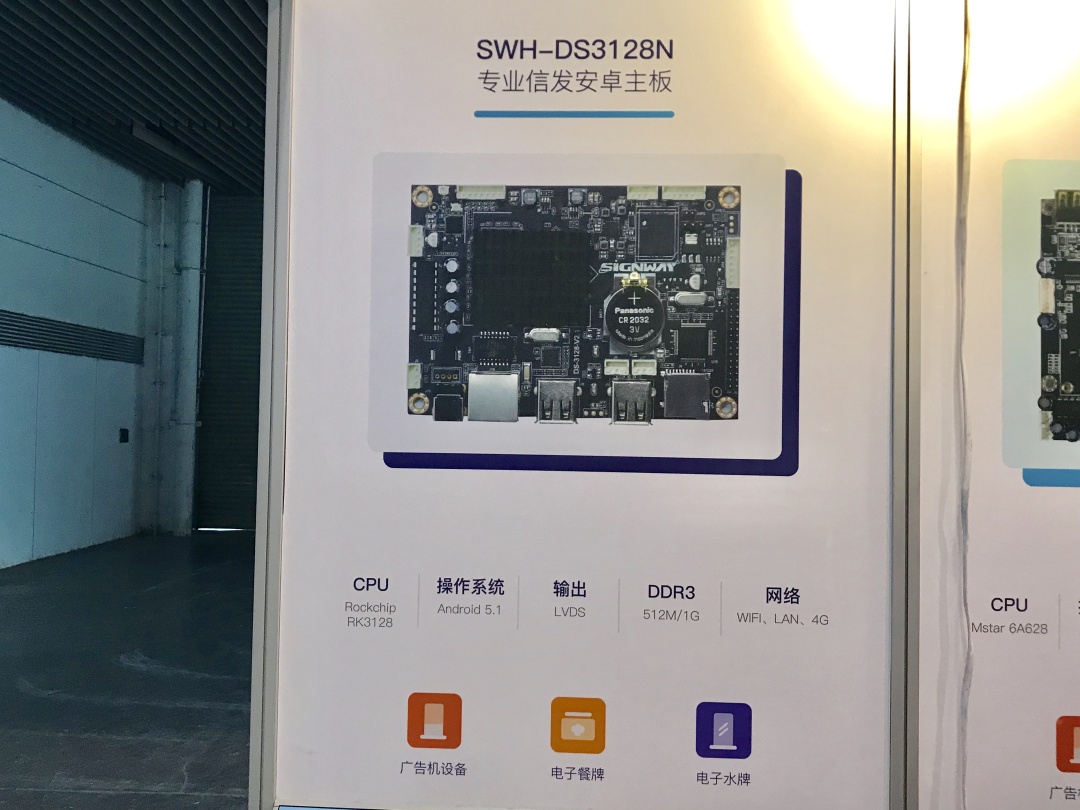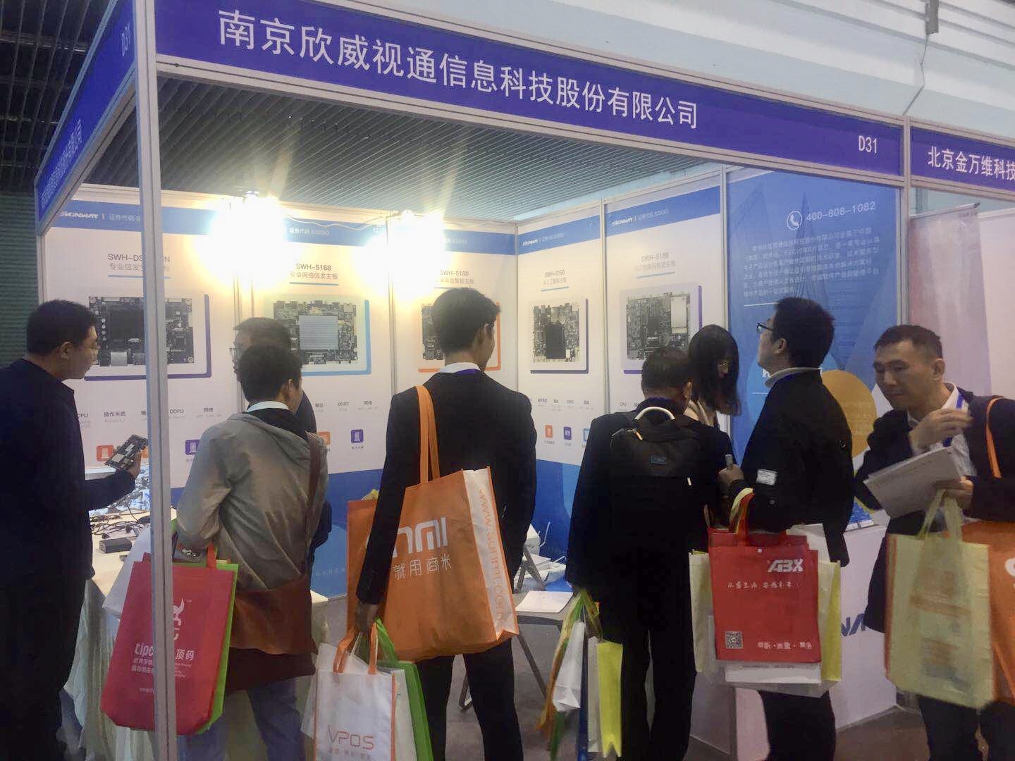 展會當場的參展產品多以智能POS機、智能收銀機、PC電子秤等零售終端為主,欣威視通攜帶多款安卓智能主板及安卓高清播放盒亮相現場,其中以SWH-5180 RK3288雙屏異顯智能主板為核心的智能POS機方案成為全場亮點。