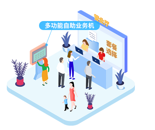 對接營業廳系統,以安卓智能主板為主要硬件,外接讀卡器、掃描儀、打印機、攝像頭等外設,實現多業務自助繳費、廣告投放、業務查詢、視頻對講、遠程管理、24小時服務等增值功能,提升客戶滿意度。